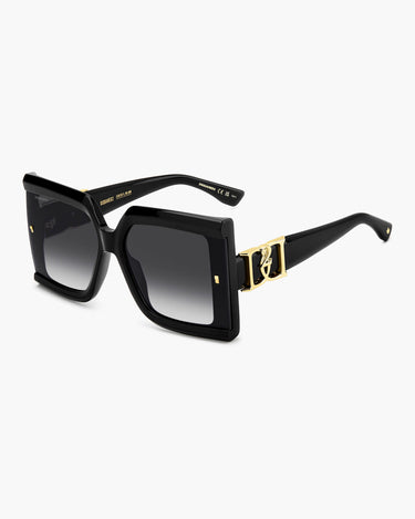 Accattivanti e bellissimi, gli occhiali da sole donna DSQUARED2 D2 0185/G/S - 807 sono amati dalle fashioniste. Merito del frontale squadrato e scultoreo, con lenti aperte in poliestere grigio scuro sfumato, ai lati e iconici rivetti. Decisamente oversize, eppure leggero sul volto grazie alle superfici lavorate per togliere peso. Il logo con le due D color oro intrecciate abbraccia le aste, un dettaglio ad alto tasso di glamour. Il modello arriva in una variante black, effetto wow garantito.