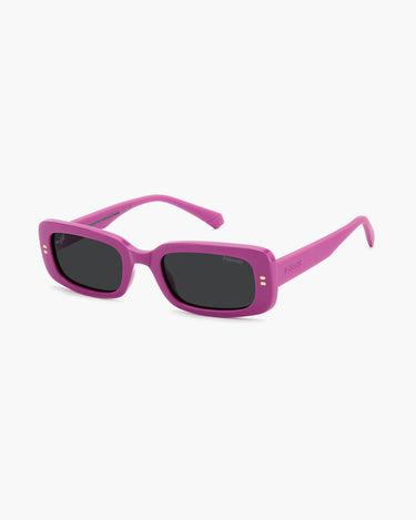 Freschi, colorati e di tendenza, gli occhiali da sole modello PLD 8071/S - MU1 sono pensati per le bambine che amano distinguersi con stile. La montatura rettangolare rosa in eco policarbonato unisce leggerezza, comfort e resistenza, rispettando al tempo stesso l’ambiente. Le lenti grigio polarizzate in triacetato proteggono efficacemente dagli abbagliamenti e dai raggi UV, garantendo una visione chiara e riposata anche nelle giornate più luminose.
