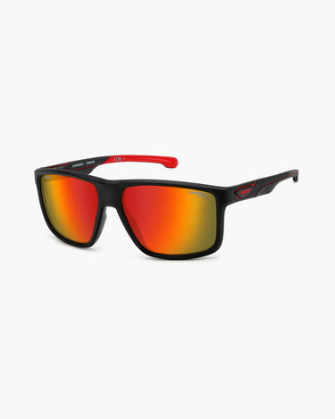 Leistung und sportliches Design vereinen sich in der Carrera Ducati CARDUC 056/ SonnenbrilleS - 003, entworfen für den Mann, der Geschwindigkeit und dynamischen Stil liebt. Der rechteckige schwarze Polyamid-Rahmen bietet Leichtigkeit, Haltbarkeit und einen markanten Look, inspiriert von der Ducati-Welt. Die mehrschichtigen roten Polycarbonat-Gläser bieten hervorragenden UV-Schutz und optimale Sicht bei allen Lichtverhältnissen.