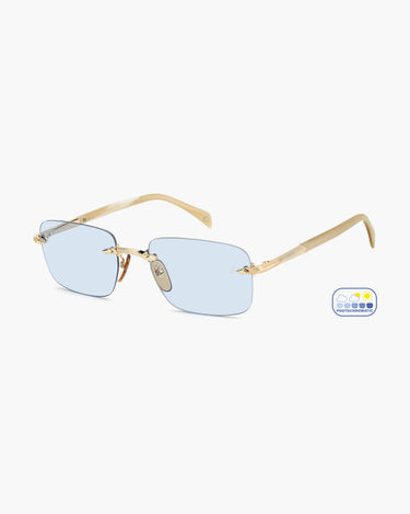 Raffiniertes Design und raffinierte Details zeichnen die Sonnenbrille David Beckham DB 1195 aus.S - IDA für Herren. Mit seinem eleganten rechteckigen, goldfarbenen Metallrahmen strahlt dieses Modell einen modernen und markanten Stil aus – perfekt für den Mann, der gerne auffällt, ohne zu anspruchsvoll zu sein. Die photochromen blauen Nylongläser bieten effektiven Schutz vor Sonnenlicht und eine markante Ästhetik.