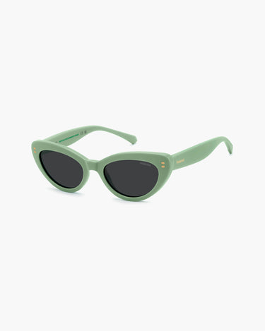 Perfekt, um die Augen der Kleinen mit Stil zu schützen: die Sonnenbrille PLD 8068/S Die 1ED Sonnenbrille vereint Sicherheit und farbenfrohes Design. Der grüne, umweltfreundliche Polycarbonat-Rahmen ist leicht und robust – ideal für jedes Outdoor-Abenteuer. Die grauen polarisierten Triacetat-Gläser bieten umfassenden Sonnenschutz und reduzieren Blendeffekte für klare und komfortable Sicht. Die Cat-Eye-Form verleiht dem Modell eine persönliche Note und sorgt für einen jugendlichen und trendigen Look.