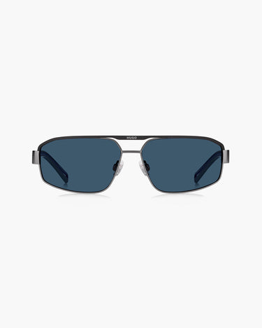 Scopri gli occhiali da sole Hugo Boss HG 1368/S - SVK con montatura grigia/nera in acciaio inossidabile eco e lenti blu in policarbonato. Design Navigator elegante, ideale per uno stile maschile moderno e urbano.