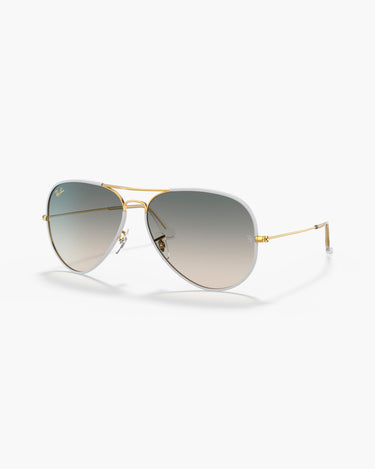 Ray-Ban RB3025JM - 919632 Aviator Full Color unisex sunglasses combine the classic pilot shape with a premium gray metal frame. The light gray gradient crystal lenses ensure clear, natural vision, while the adjustable nose pads ensure personalized comfort. This model offers a balanced fit and a timeless design ideal for any occasion.