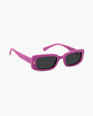 Freschi, colorati e di tendenza, gli occhiali da sole modello PLD 8071/S - MU1 sono pensati per le bambine che amano distinguersi con stile. La montatura rettangolare rosa in eco policarbonato unisce leggerezza, comfort e resistenza, rispettando al tempo stesso l’ambiente. Le lenti grigio polarizzate in triacetato proteggono efficacemente dagli abbagliamenti e dai raggi UV, garantendo una visione chiara e riposata anche nelle giornate più luminose.