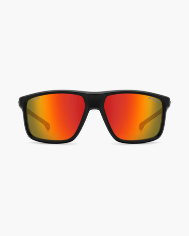 Prestazioni, e design sportivo si fondono negli occhiali da sole Carrera Ducati CARDUC 056/S - 003, pensati per l’uomo che ama la velocità e lo stile dinamico. La montatura rettangolare in poliammide nera offre leggerezza, resistenza e un look grintoso ispirato al mondo Ducati. Le lenti in policarbonato rosso multistrato assicurano un’eccellente protezione dai raggi UV e una visione ottimale in ogni condizione di luce