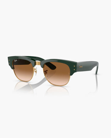 Estilo atrevido y cautivador para las nuevas gafas de sol RB0316S - 136851 MEGA CLUBMASTER. La montura verde sobre dorado está hecha de propionato y las lentes son de cristal marrón claro. Su robusta estructura combina un estilo icónico con una protección visual superior. Elegancia atemporal y excelente rendimiento óptico para cualquier ocasión.